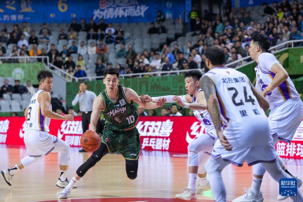 4月8日,南京天之蓝队球员郭昊文(左二)在比赛中突破。新华社记者 李博 摄