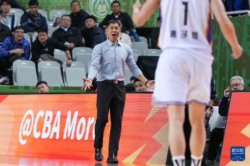4月8日,北京控股队主教练张庆鹏在场边指挥。新华社记者 李博 摄